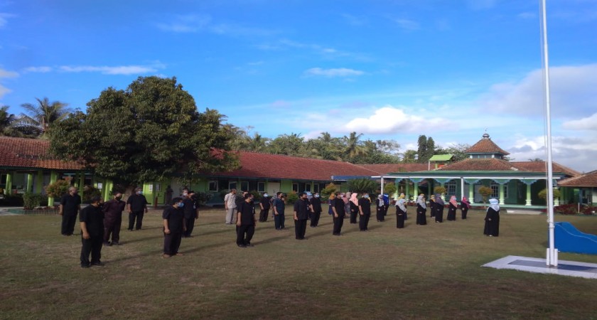 Apel Perdana di masa pandemi covid-19 dilaksanakan dengan mematuhi protokol kesehatan secara ketat yakni penggunaan masker dan jarak.