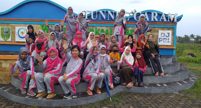 Kurang lebih pukul 08.30 WIB odong-odong dengan dua gerbong yang penuh dengan peserta kunjungan, mulai meluncur ke arah timur di jalan Daendels menuju tujuan pertama, Kampung Garam Tlogopragoto. Sepanjang perjalanan ibu-ibu anggota IKS yang sebagian membawa serta putra putrinya cukup bergembira. Tidak lama dari keberangkatan rombongan sudah sampai di lokasi. Sesampai di lokasi mereka sangat antusias dengan wisata edukasi yang ditunjukkan antara lain secara rinci mewawancarai pekerja mengenai proses pembuatan garam hingga siap konsumsi. Garam yang diproduksi secara alamiah di sini sudah dikomersialkan dengan merk dagang Cirat Segoro Renges (CSR). Ada beberapa variasi garam yang diproduksi seperti garam untuk memasak, penyembuhan penyakit dan spa. Cukup banyak anggota IKS yang belanja baik membeli garam itu sendiri atau buah Jambu Kristal yang memang dibudidayakan di lingkungan sekitar pembuatan garam. Setelah puas di tempat ini tidak lupa sesi berfoto ria sebagai kenang-kenangan, setengah jam berikutnya rombongan bertolak untuk menuju pantai Ambal. Agak berbeda jalan yang ditempuh dengan sebelumnya, kali ini odong-odong melewati Jalan Lingkar Selatan Selatan (JLSS) yang menghubungkan kota Cilacap dan Yogyakarta.